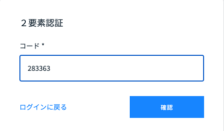 - 認証アプリが生成したコードを画面に入力します。